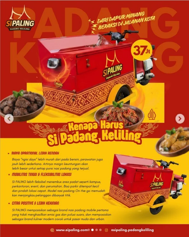 Berbeda dengan rumah makan Padang pada umumnya, Si Paling mengusung konsep gerobak atau booth keliling yang dapat menjangkau area perumahan, perkantoran, sekolah, hingga pusat keramaian. Sistem ini membuat bisnis menjadi lebih hemat biaya operasional sekaligus mampu menjangkau lebih banyak pelanggan. Tidak heran jika Kemitraan Si Paling mulai dilirik sebagai salah satu peluang bisnis yang potensial pada tahun 2026.