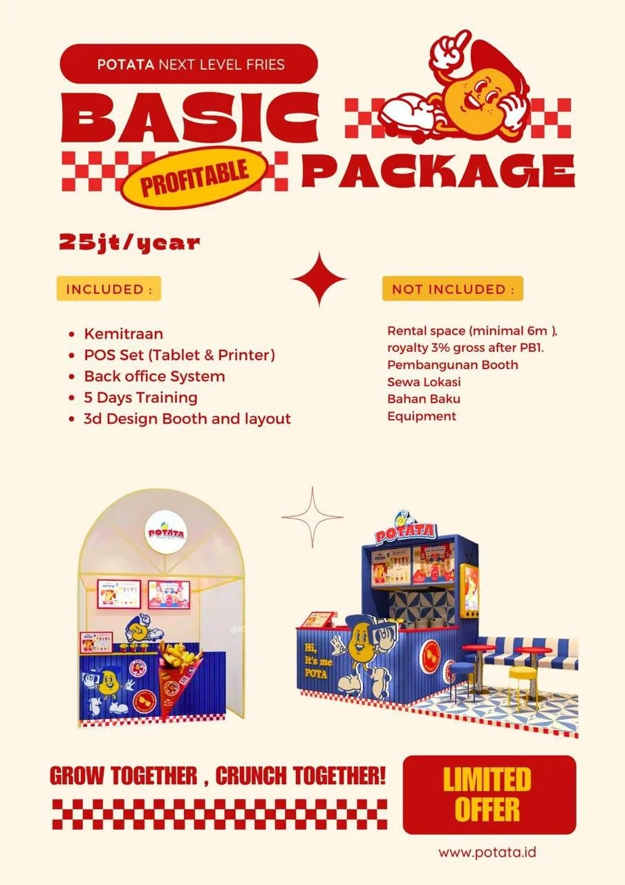 Konsep Potata dirancang agar inklusif bagi siapa saja, mulai dari karyawan yang ingin memiliki penghasilan tambahan hingga mahasiswa yang ingin belajar berwirausaha. Anda tidak memerlukan latar belakang sebagai koki profesional, karena seluruh bahan baku dan bumbu sudah disiapkan oleh pusat dalam bentuk siap saji atau mudah diolah. Dukungan manajemen yang suportif memastikan setiap mitra mendapatkan bimbingan yang diperlukan. Dengan sistem yang sudah matang, bisnis ini sangat cocok bagi mereka yang mencari investasi dengan risiko operasional yang minim namun memiliki potensi profitabilitas yang stabil.