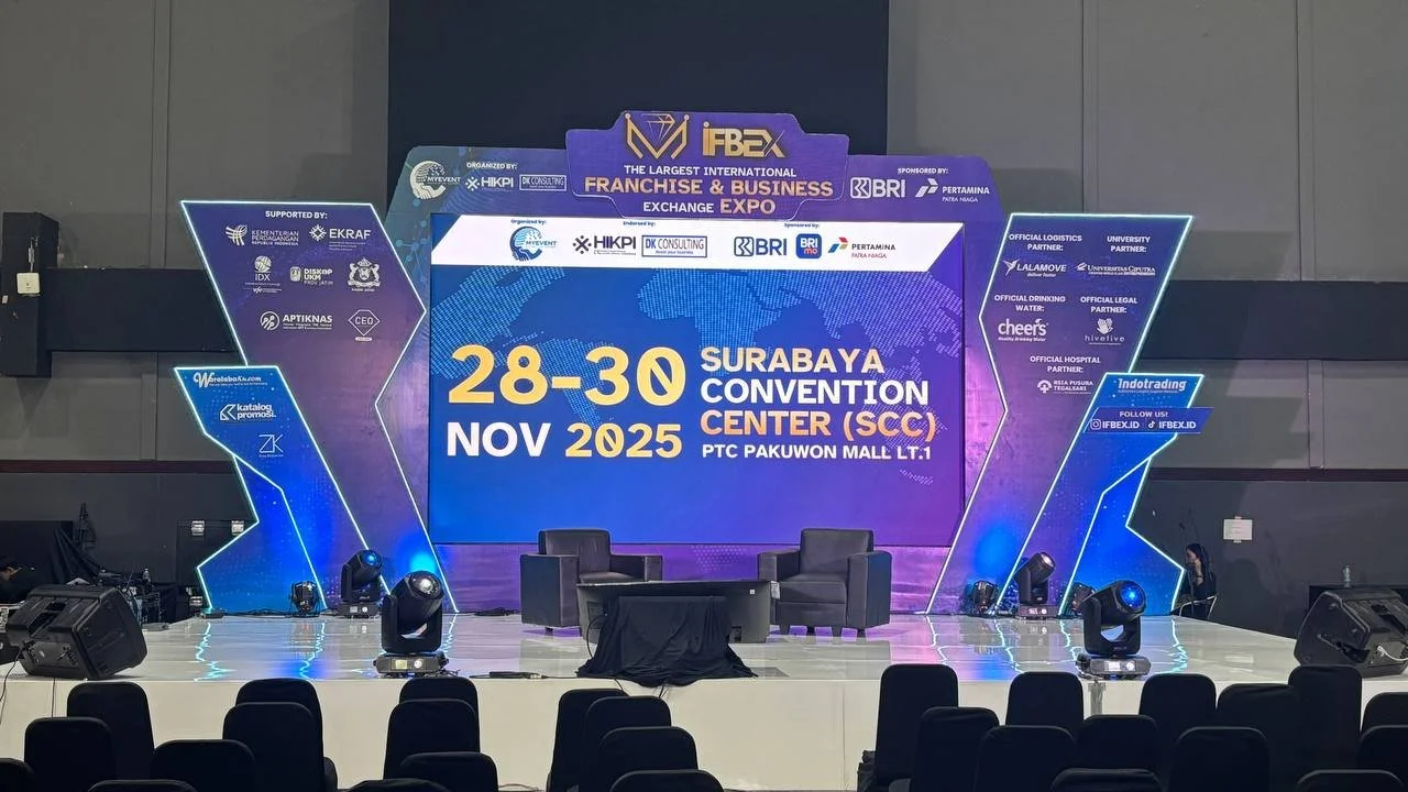 Surabaya, 30 November 2025, StartFranchise.Id — Pameran franchise International Franchise & Business Exchange Expo (IFBEX) 2025 resmi digelar pada 28–30 November 2025 di Surabaya Convention Center (SCC), Pakuwon Mall Surabaya. Dengan lebih dari 100 brand franchise nasional dan internasional, pameran ini menjadi platform strategis untuk mempertemukan franchisor dan calon pemilik usaha dari berbagai segmen, seperti F&B, ritel, kesehatan, pendidikan, hingga layanan digital. Pameran franchise IFBEX 2025 organized by MYEVENT Exhibition Expert dan didukung oleh DK Consulting yang dimiliki oleh Djoko Kurniawan.